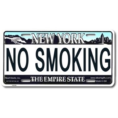 Decorate your car with this New York style license plate. "No Smoking" written on Plate. Measures 6" x 12" and made from aluminum.